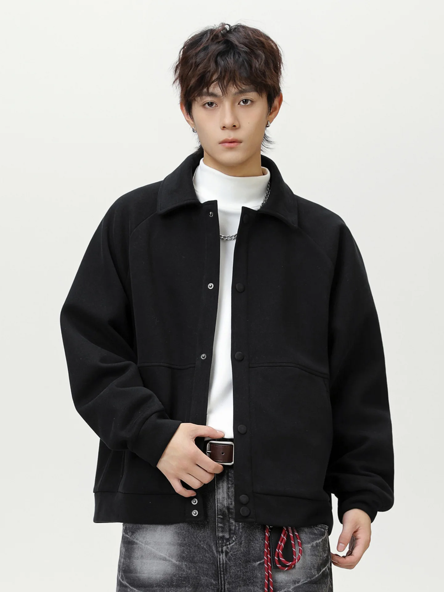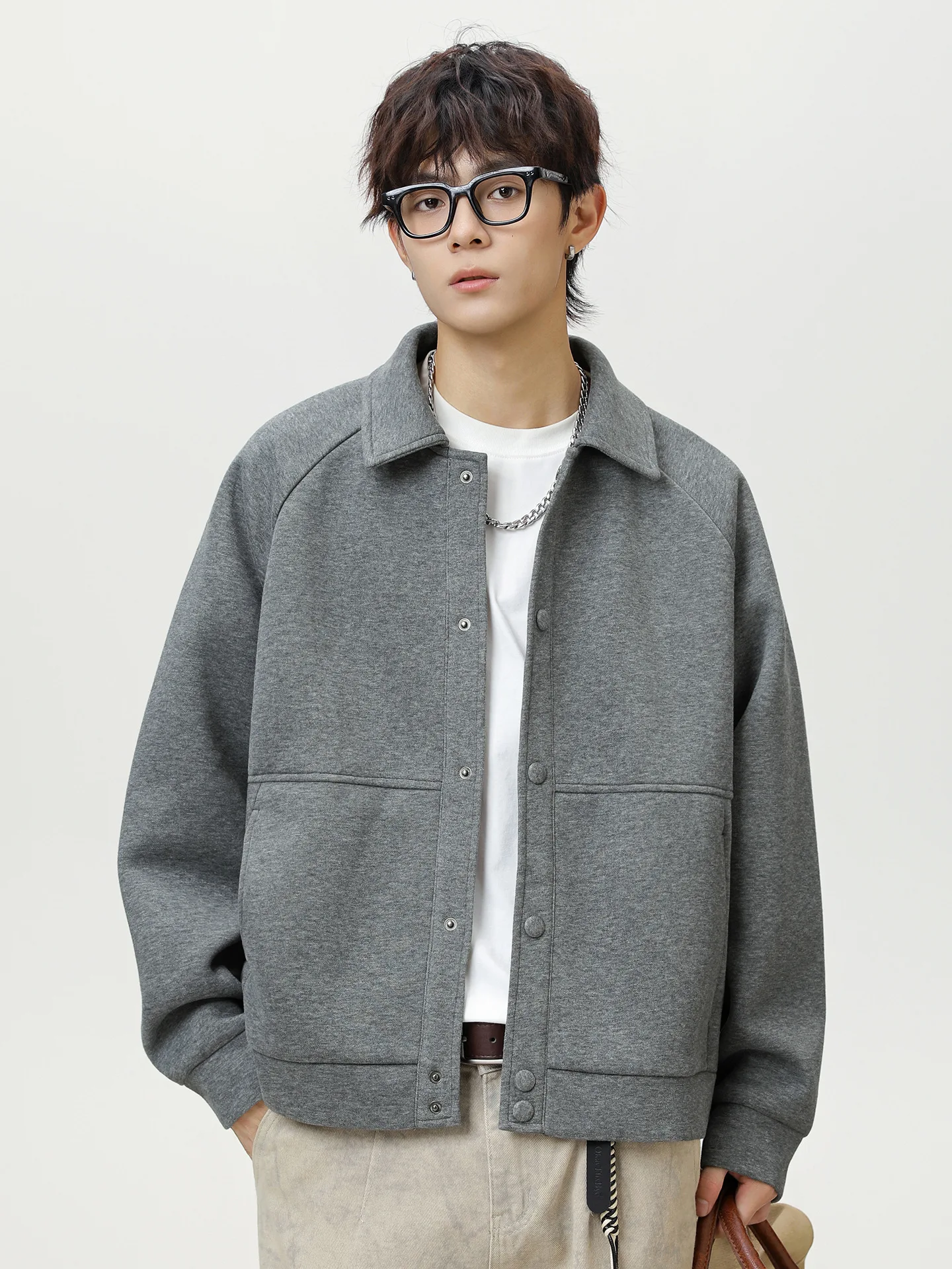 Autumn Men's New Fashion Brand Jacket Raglan Sleeve Wide Profile Loose Business Casual Stylish Windproof Worsted Fabric Front
